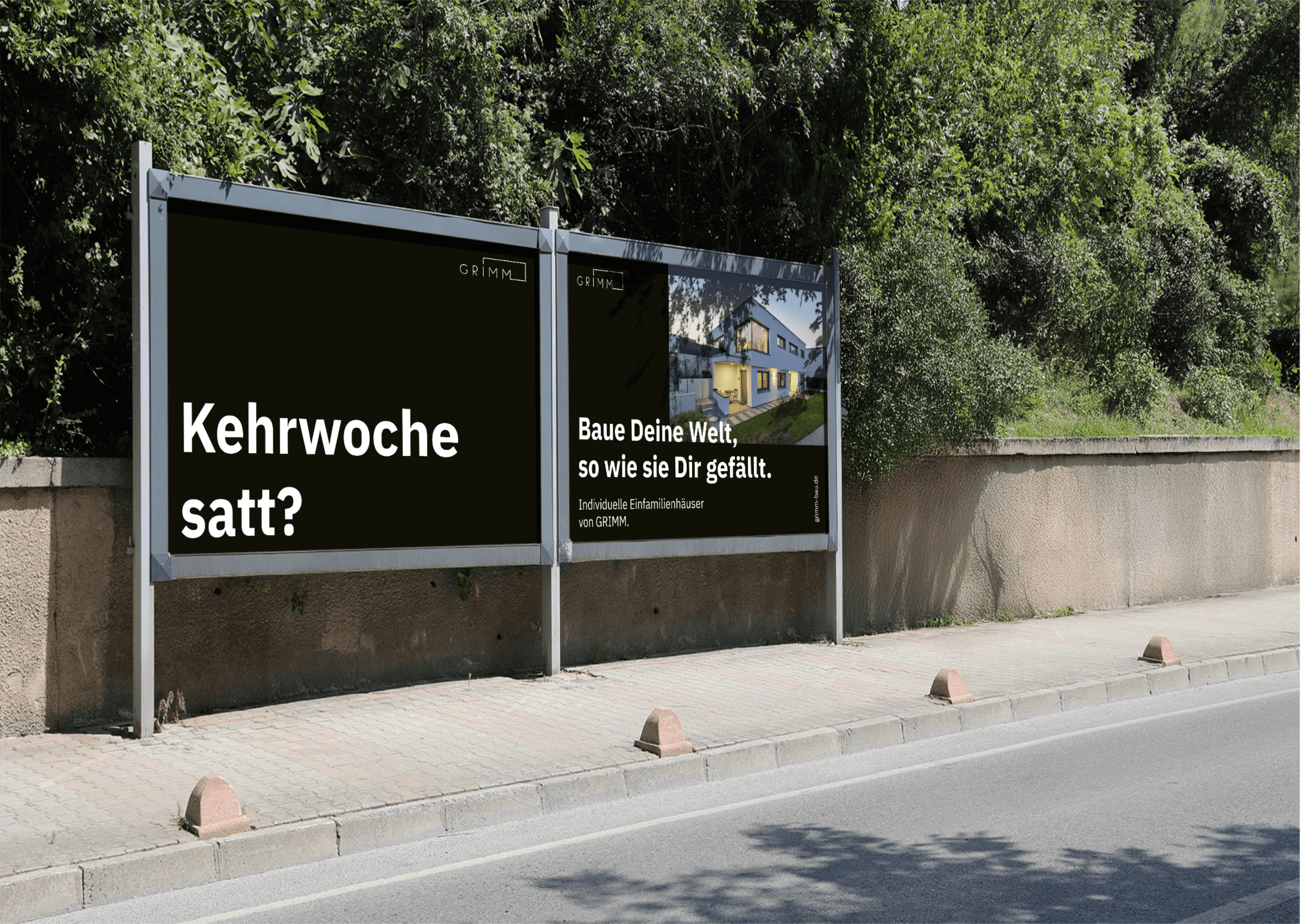Grimm GmbH, a construction company in Biberach an der Riß, sought to enhance its brand visibility and connect with potential clients through an innovative Out-of-Home (OOH) campaign. The goal was to showcase Grimm’s expertise in fulfilling housing dreams—whether for new builds or renovations—and to establish the brand as a trusted partner for individual living solutions. The campaign needed to grab attention, spark curiosity, and reinforce Grimm’s reputation for high-quality and bespoke housing projects.